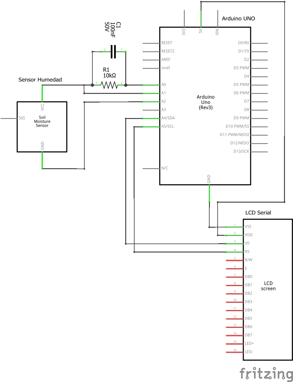 - Display LCD de 16x2 caracteres, con conexión serie I2C