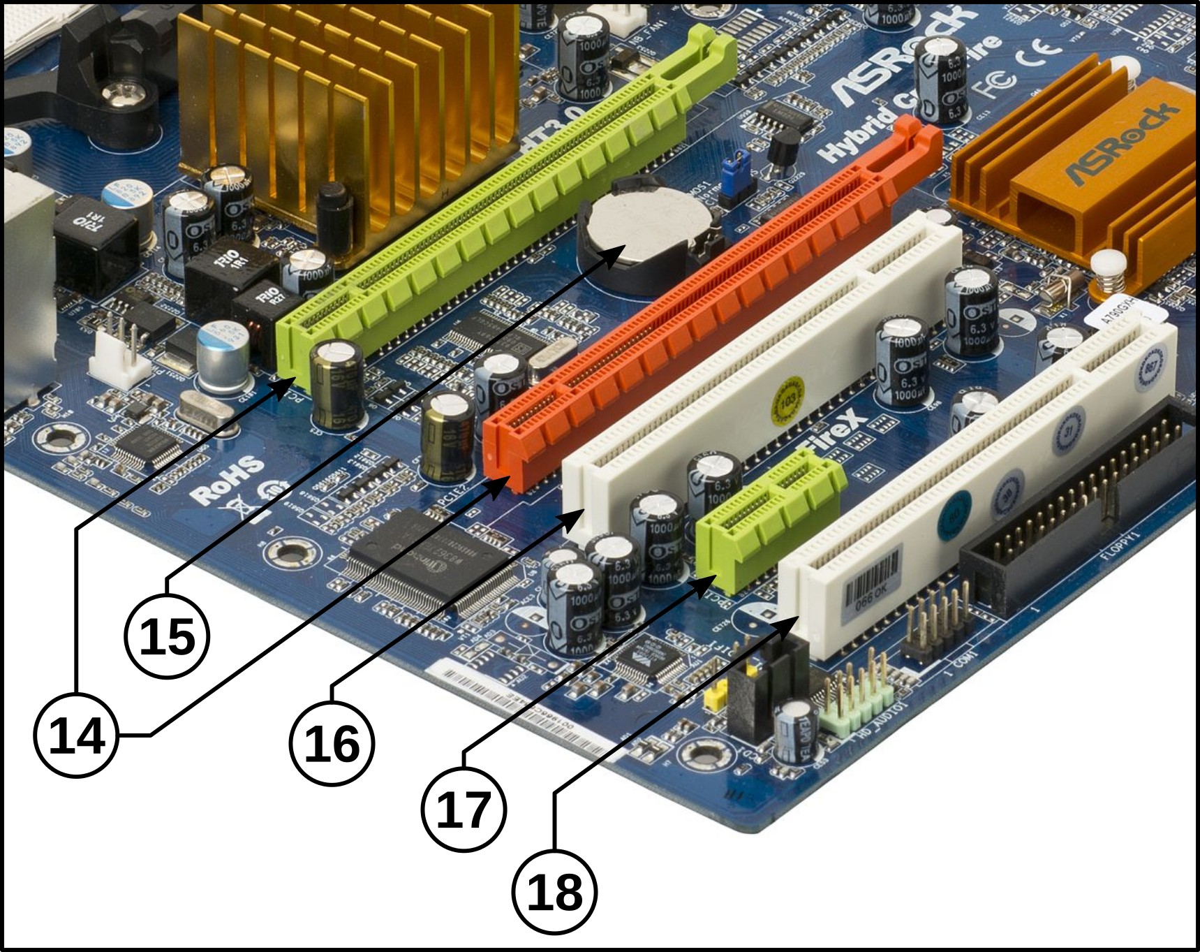 22 - SATA connectors for connecting hard drives, SSDs, DVDs, etc.