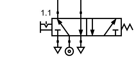- When actuating the 5/2 valve, the air passes directly from the pressure source to the pneumatic cylinder 1.0, so the rod comes completely out. Meanwhile, cylinder 2.0 connects with the exhaust, allowing it to return to its rest position.