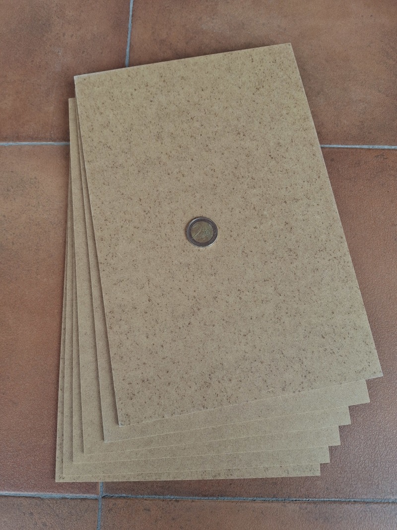 Tablas tamaño DIN A4 de material HDF y grosor 3 mm.
