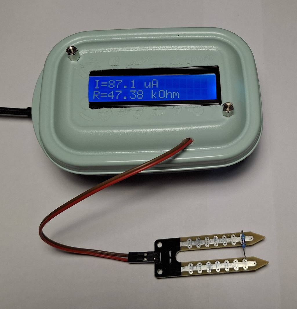Conductímetro con una resistencia de 47000 ohmios en el sensor.¶