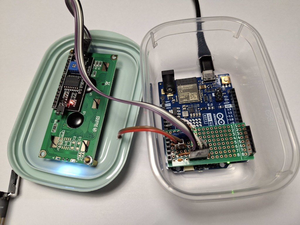 - Display LCD de 16x2 caracteres, con conexión serie I2C