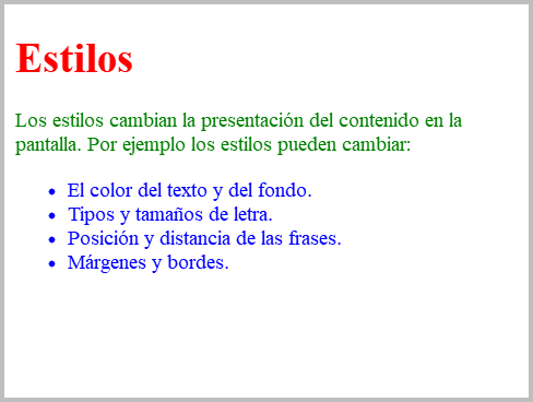 La etiqueta <style> dentro del código HTML permite añadir estilos al contenido del documento HTML. Un ejemplo de estilo es el color de un texto, su tamaño, la separación entre líneas, etc.