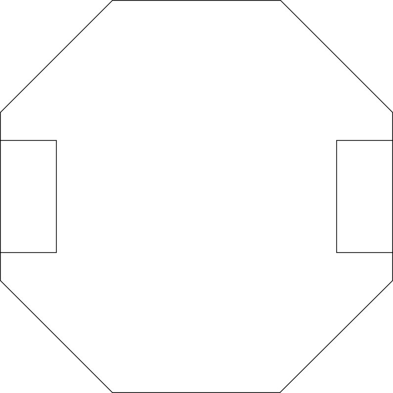 3. A continuación utilizaremos la impresión como plantilla para cortar una tabla de madera con la forma octogonal de la base universal, recortando también los rectángulos que alojarán las ruedas del robot.