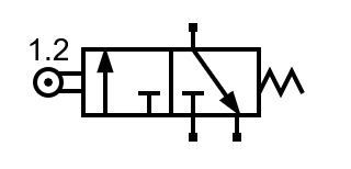 - Al llevar a reposo la válvula 3/2, el aire introducido en el cilindro tiene una vía de escape a través de la válvula, por lo que el cilindro retorna a su posición de reposo. Esto es equivalente a abrir otra válvula 2/2 para permitir el escape de aire.