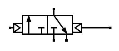 En el accionamiento por pilotaje neumático la manera de accionar la válvula es aportando aire a presión en cada uno de sus extremos derecho o izquierdo: